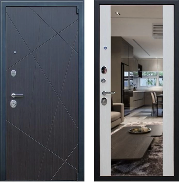 Дизайнерская входная Дверь Вектор с зеркалом класса Люкс с несколькими листами стали, звукоизоляцией и теплоизоляцией. Утепленный короб и полотно защитят от сквозняков и шумов. Модель не только надежная, комфортная, защищенная и высочайшего качества, но и очень красивая! Будет отлично сочетаться с интерьером дома, квартиры или офиса. Сейчас действует выгодное предложение по цене: 51 477 руб.