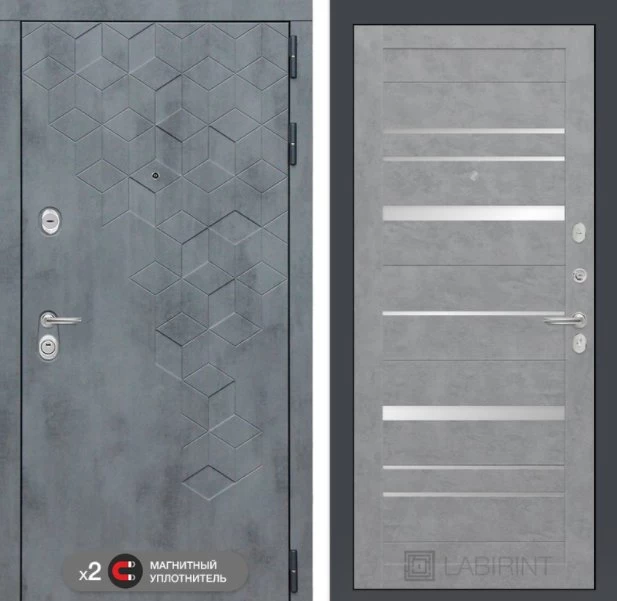 Дизайнерская входная Дверь Бетон класса Люкс с несколькими листами стали, звукоизоляцией и теплоизоляцией. Утепленный короб и полотно защитят от сквозняков и шумов. Модель не только надежная, комфортная, защищенная и высочайшего качества, но и очень красивая! Будет отлично сочетаться с интерьером дома, квартиры или офиса. Сейчас действует выгодное предложение по цене: 56 427 руб.